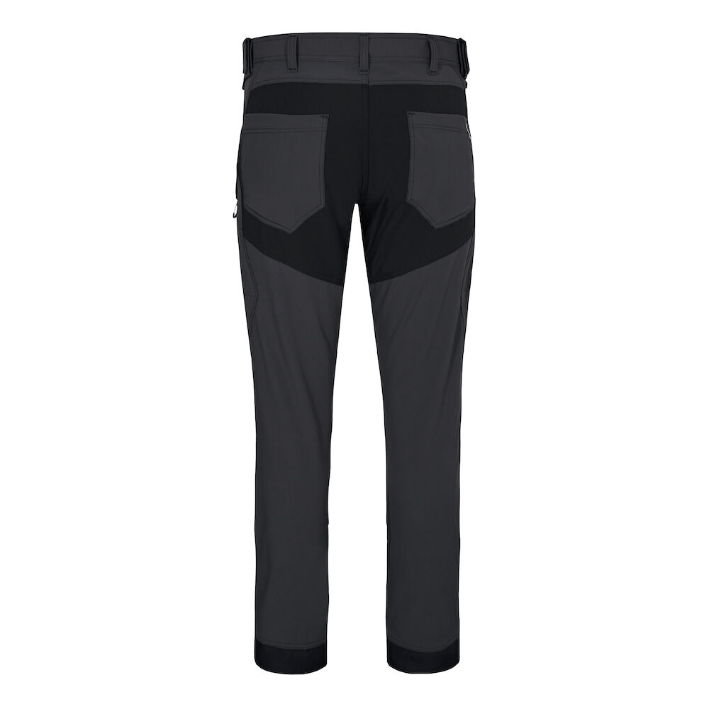 Funkcionalne radne hlače modernog kroja i mnogo praktičnih detalja. Optimalno pristajanje s ergonomski oblikovanim i ojačanim koljenima. Tkanina je udobna, izdržljiva rastezljiva u 4 smjera s vrhunskom prozračnošću. Tkanina će apsorbirati lagani znoj i brzo se osušiti za iznimno visoku udobnost. Gumbi za jednostavno pričvršćivanje visećih džepova za alat. D-prsten s prednje strane za pričvršćivanje npr. iskaznice. Dva prostrana prednja poprečna džepa. Dva stražnja džepa. Dva bedrena džepa s patentnim zatvaračem. Lijevi bedreni džep ima dodatni džep za telefon. Desni bedreni džep ima pričvršćen preklopni džep s dodatnim dijelovima, ojačani džep za koljena/koljena s čičak zatvaračem na dnu, kao i dvije opcije za podešavanje visine jastuka za koljena. Ojačano koljeno izrađeno je od ekstra otpornog kevlara. Donji dio nogavica je ojačan za dodatnu čvrstoću. Hlače imaju ekstra duboki rub tako da se duljina hlača može produžiti ako je potrebno. Jedan šav se produžuje kako bi se osigurala dodatna duljina nogavica, dok šav ostaje zapečaćen.